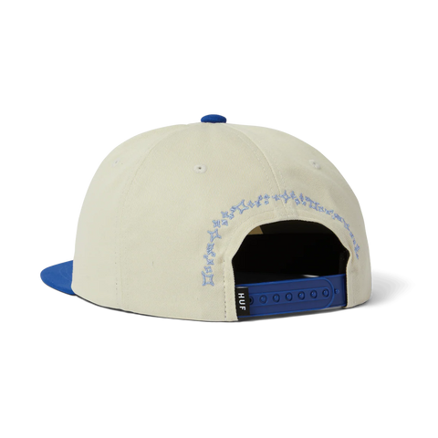 • 100% cotton twill 5 panel hat• Embroidered artwork at front crown and back arch• Adjustable plastic snap closure• HUF woven flag label at back